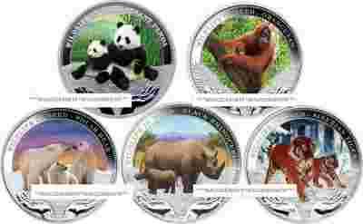 TUVALU 1 $ 2012 COMPLET 5 MONET ZAGROŻONE GATUNKI