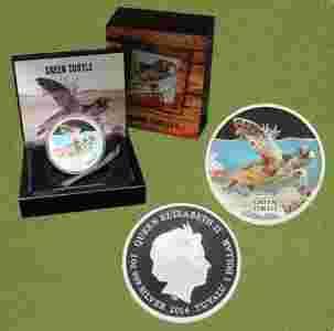 TUVALU 1 $ 2014 ŻÓŁW ZIELONY SREBRO 1 UNCJA
