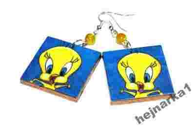 tweety sylwester bajka kolczyki decoupage promocja