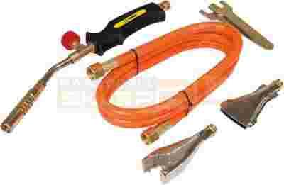 Zestaw do lutowania TOPEX o mocy palnika 2kW, temperaturze płomienia 1850°C. Zestaw zawiera 3 palniki: punktowy, otaczający i płaski. Palnik otaczający szybciej nagrzewa rurę miedzianą, ponieważ płomień nagrzewa ją równocześnie w wielu punktach. Palnik płaski przeznaczony jest do nagrzewania powierzchni, z których chcemy usunąć starą farbę lub lakier. Z wężem o długości 1.5 m. Zestaw doskonale sprawdza się w pracach warsztatowych, jak i podczas lutowania instalacji miedzianych. Marka TOPEX skierowana jest do majsterkowiczów podejmujących się drobnych prac remontowych.