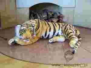 Niezwykle realistycznie wykonany leżący tygrys o długości całkowitej ok. 110cm (ok. 70cm + ogon 43cm)! Wykonany z materiałów wysokiej jakości. Doskonała propozycja prezentu dla bliskich, wystroju salonu bądź pokoju dziecięcego.