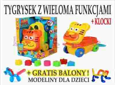 TYGRYSEK pudełko+klocki chodzik pchacz zestaw