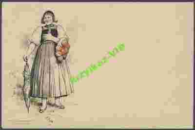 Typy Niemieckie - kobieta z parasolem - litho b/o