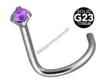 Tytanowy kolczyk do nosa z kryształkiem fioletowy