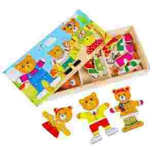 Nauka nazw ubrań, rozwój manualny i intelektualny. Skojarzenia. Dopasuj zwierzątku ubranie - potrafisz? Wymiary opakowania: 26x14cm. Zamykane pudełko, nic się nie gubi po zabawie. Wszystkie elementy zaokrąglone i bezpieczne dla dziecka. bardzo trwałe. Intensywne kolory, ciekawe wzory ubrań. Nauka kształtów, kolorów, dopasowywania ubrań do pogody itp. Nieograniczone możliwości twórczej, kreatywnej zabawy.