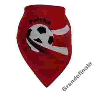Czerwona apaszka A43 POLSKA z flagą i piłką wykonana z dzianiny bawełnianej, zawiązywana. Stanowi fajny gadżet i dopełnienie stroju, także majtek...