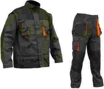 Wysokiej jakości ubranie robocze składające się z bluzy i spodni do pasa.