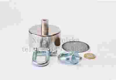 Przesyłka opiewa na uchwyt magnetyczny, ucho do uchwytu oraz magnes neodymowy o wymiarach 55 mm ( średnica magnesu) x 25 mm ( wysokość = grubość ).
