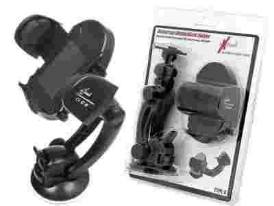 Uchwyt uniwersalny do mobilnych urządzeń elektronicznych m.in. telefonów komórkowych, PDA. Regulowanie w dwóch punktach ramię oraz obrotowa o 360 stopni głowica gwarantują możliwość ustawienia urządzenia pod najwygodniejszym kątem. Uchwyt z urządzeniem można zamontować na dwa sposoby; za pomocą przyssawki do szyby lub zaczepów do kratki nawiewu. W celu zapewnienia lepszego trzymania urządzenia tylny panel oraz ramiona uchwytu oklejono antypoślizgową pianką, pianka ta również zabezpiecza urządzenie przed zarysowaniem.