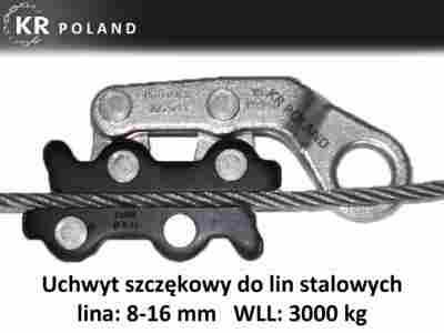 - Zacisk do lin o średnicy 8mm - 16mm, WLL 3000kg - obciążenie robocze.