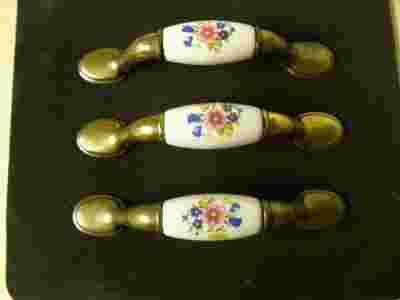 UCHWYTY PRAWDOPODOBNIE ALUMINIOWE, STYLIZOWANE NA MOSIĘŻNE, Z PORCELANOWYMI