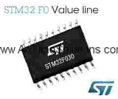 The STM32F030x microcontroller incorporates the high-performance ARM Cortex™-M0 32-bit RISC core operating at a 48 MHz frequency, high-speed embedded memories (up to 64 Kbytes of Flash memory and up to 8 Kbytes of SRAM), and an extensive range of enhanced peripherals and I/Os. All devices offer standard communication interfaces (up to two I2Cs, up to two SPIs, and up to two USARTs), one 12-bit ADC, up to 6 general-purpose 16-bit timers and an advanced-control PWM timer.