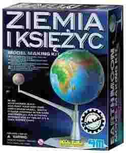 Model Układu Ziemia - Księżyc składa się z zestawu plastikowych elementów, które należy samodzielnie złożyć i pomalować. Księżyc o średnicy około 2 cm jest umieszczony na ruchomym ramieniu o długości 11 cm i można go obracać dookoła kuli ziemskiej, której średnica liczy 9,5 cm. Po złożeniu model należy pomalować, gdyż kula ziemska i księżycowa są w jednolitych kolorach. W komplecie znajduje się pędzelek oraz zestaw farb (w tym jedna świecąca w ciemności).