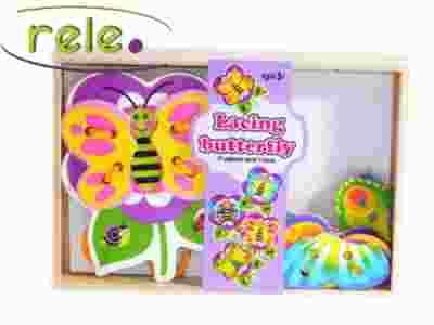 UKŁADANKA DREWNIANA MOTYLEK DO SZNUROWANIA EKO