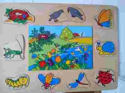 Układanka sorter drewniany puzzle ŁĄKA OWADY