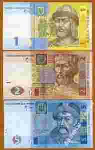 Ukraina zestaw 1/2/5 Hrywien UNC. 2005/2011