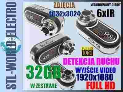 UKRYTA KAMERA 1920x1080 APARAT DET RUCHU 6IR +32GB
