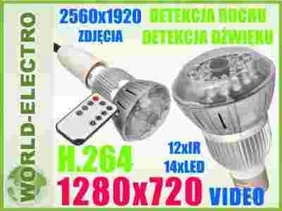 KAMERA SZPIEGOWSKA w KSZTAŁCIE ŻARÓWKI LED z 12 x IR oraz 14x LED
