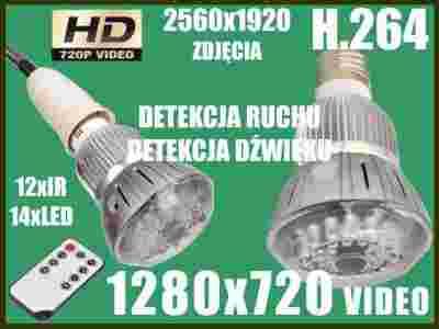 KAMERA SZPIEGOWSKA w KSZTAŁCIE ŻARÓWKI LED z 12 x IR oraz 14x LED