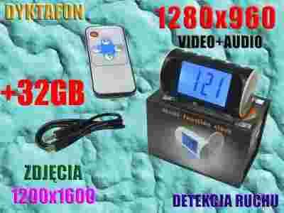 UKRYTA KAMERA HD ZEGAR PODSŁUCH DETEKC RUCHU +32GB