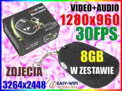 UKRYTA KAMERA SZPIEGOWSKA APARAT BRELOK PILOT +8GB