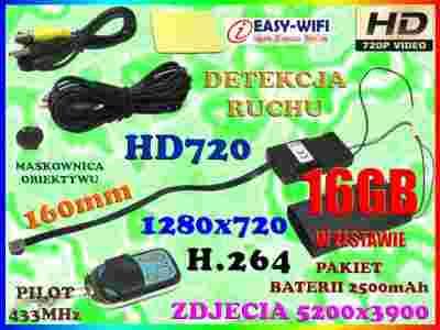 UKRYTA KAMERA SZPIEGOWSKA HD720 +BAT 2500mAh +16GB