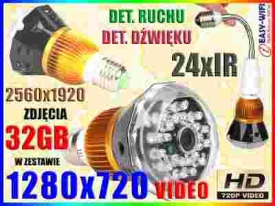 UKRYTA KAMERA W KSZTAŁCIE ŻARÓWKI LED PILOT +32GB
