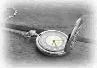 Ekskluzywny naszyjnik - zegarek w kolorze srebrnym z ażurowym przednim wieczkiem.