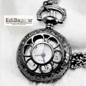Unikalny Zegarek Naszyjnik Wisior Black RETRO