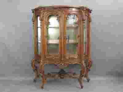 Plastyczne, bardzo starannie opracowane snycersko detale, zostały dodatkowo podkreślone delikatnymi złoceniami. Środek mebla okleinowana brzozą, Z tyłu zamontowane lustro, dzięki czemu środek jest jasny i doskonale widoczny.