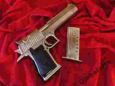„Desert Eagle – pistolet na silny nabój rewolwerowy .357 Magnum z lufami długości: 6, 8, 10 i 14 cali (152, 203, 254 i 355 mm). Broń została zaprojektowana w 1979 roku przez amerykańską firmę Magnum Research, Inc. założoną w St. Paul w stanie Minnesota. Następnie w wyniku porozumienia z Israel Military Industries była m.in. produkowana na licencji.