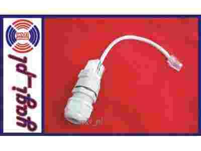 WATERPROOF-ETHERNET jest wodoszczelnym dławikiem przeznaczonym dla obudów zewnętrznych IP55, IP66 i innych. Dławik od wewnętrznej strony zakończony jest standardowym kablem ethernetowym ( prostym ) o długości 20 cm, od strony zewnętrznej natomiast standardowym portem ethernetowym RJ45.