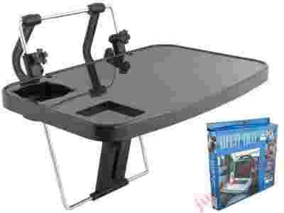 NOWY SAMOCHODOWY STOLIK POD LAPTOPA SKŁADANY, FUNKCJONALNY KOLOR: CZARNY Uniwersalny stolik samochodowy pod laptopa umożliwia w łatwy i szybki sposób wygodnie umieścić laptopa, książki, jedzenie itp. na kierownicy samochodu, fotelu kierowcy/pasażera lub tylnych siedzeniach.