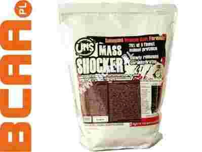 UNS Mass Shocker jest mieszanką wysokiej jakości matrixu białkowego o różnym czasie wchłaniania (zero białek roślinnych) oraz węglowodanów o niskim indeksie glikemicznym (przede wszystkim długołańcuchowa woskowa skrobia kukurydziana). To połączenie zapewnia stały dopływ kalorii oraz reszty składników odżywczych do tkanek. W tej cenie to bez watpienia najlepsza tego typu odzywka na rynku. Przekonaj się sam, porównaj składy z innymi odzywkami nawet z tymi najbardziej popularnymi i pożądanymi na rynku jak Mutant Mass czy Mega Mass ! Ładne drogie kolorowe opakowanie czy też pyszny słodki przepełniony chemią, słodzikami i barwnikami smak nie zawsze idą w parze z jakością (składem) gainera, mass shocker pod tym kątem nie ma absolutnie nic sobie do zarzucenia !