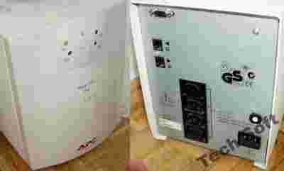 - układ AVR od 160V (gdy napięcie w sieci jest za niskie, jest ono odpowiednio korygowane do 220V przez układ AVR, chroni to akumulator przed wyładowaniem, dopiero gdy napięcie jest poniżej 160V UPS przełącza się na pracę z baterii),