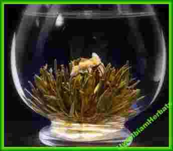 - Zielona herbata która jest kolejną efekciarą. Po zalaniu gorącą wodą jej delikatne listki rozwijają się ukazując w swoim wnętrzu połączone kwiaty jaśminu, owijające się wokół "kręgosłupa" herbaty. Napar bardzo delikatny, bez posmaku jaśminu, który jest w tym przypadku tylko ozdobą dopełniającą wnętrze herbaty. Zapraszam serdecznie. Zapraszam do zapoznania się z pozostałymi herbatami kwitnącymi: Unikatowe herbaty na prezent!