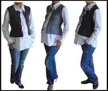 BLUZECZKA jest połączeniem eleganckiej koszuli i kamizelki. Z boku kamizelki wszyte są gumeczki dzięki czemu dopasowuje się do rosnącego brzuszka. Część koszulowa zapinana jest po całości na cyrkoniowe guziczki. Świetnie prezentują się z każdym rodzajem spodni i spódnic. Wykonana jest z 48% wool lana, 42% akryl i 10% elastan. Ich uroczy wygląd oraz uniwersalny fason sprawia że można je również nosić po okresie ciąży.