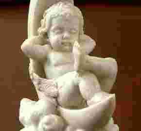 Rozczulająca figurka aniołka śpiącego na księżycu.