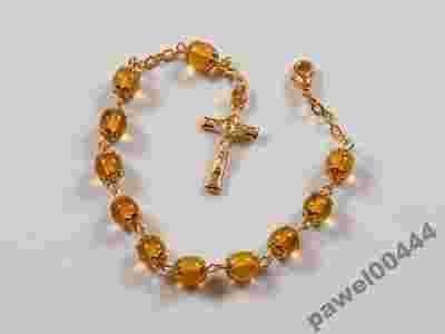 Uroczy RÓŻANIEC, BRANSOLETKA ZDOBIONA, MIODOWA.