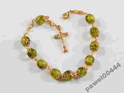 Uroczy RÓŻANIEC, BRANSOLETKA ZDOBIONA, ZIELONA.