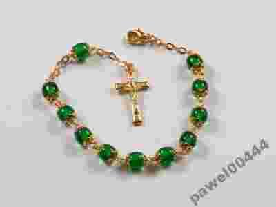 Uroczy RÓŻANIEC, BRANSOLETKA ZDOBIONA, ZIELONA.