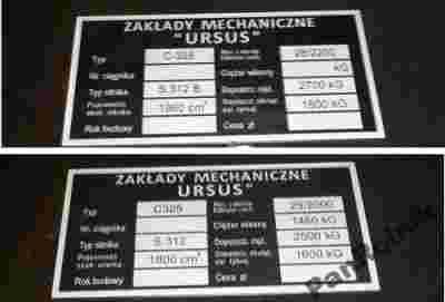 URSUS C325 C328 TABLICZKA ZNAMIONOWA