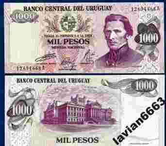 URUGWAJ 1000 PESOS 1974 r. P-51A UNC