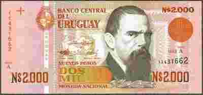 Urugwaj - 2000 nuevos pesos 1989 * P68 * Seria A