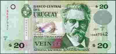 Urugwaj - 20 pesos uruguayos 2011 P86b UNC Seria F