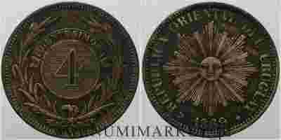 Urugwaj, 4 centesimos, 1869 rok, #1340