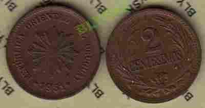 URUGWAJ /KM-20a/ 2 CENTESIMOS 1951 r.Roślina
