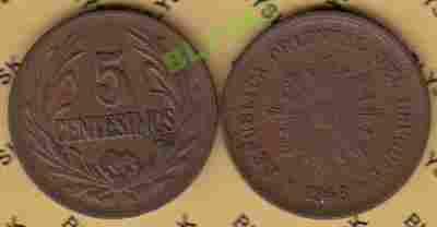 URUGWAJ /KM-21a/ 5 CENTESIMOS 1948 r.Roślinka