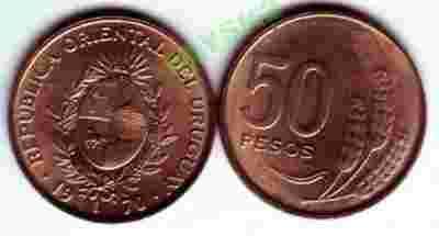 URUGWAJ /KM-57/ 50 PESOS 1970 r.Kłosy Pszenicy