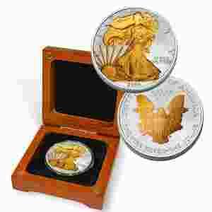 USA 1 $ Ag ORZEŁ PLAT. ZŁOTEM 24K 1 Oz + ETUI UNC